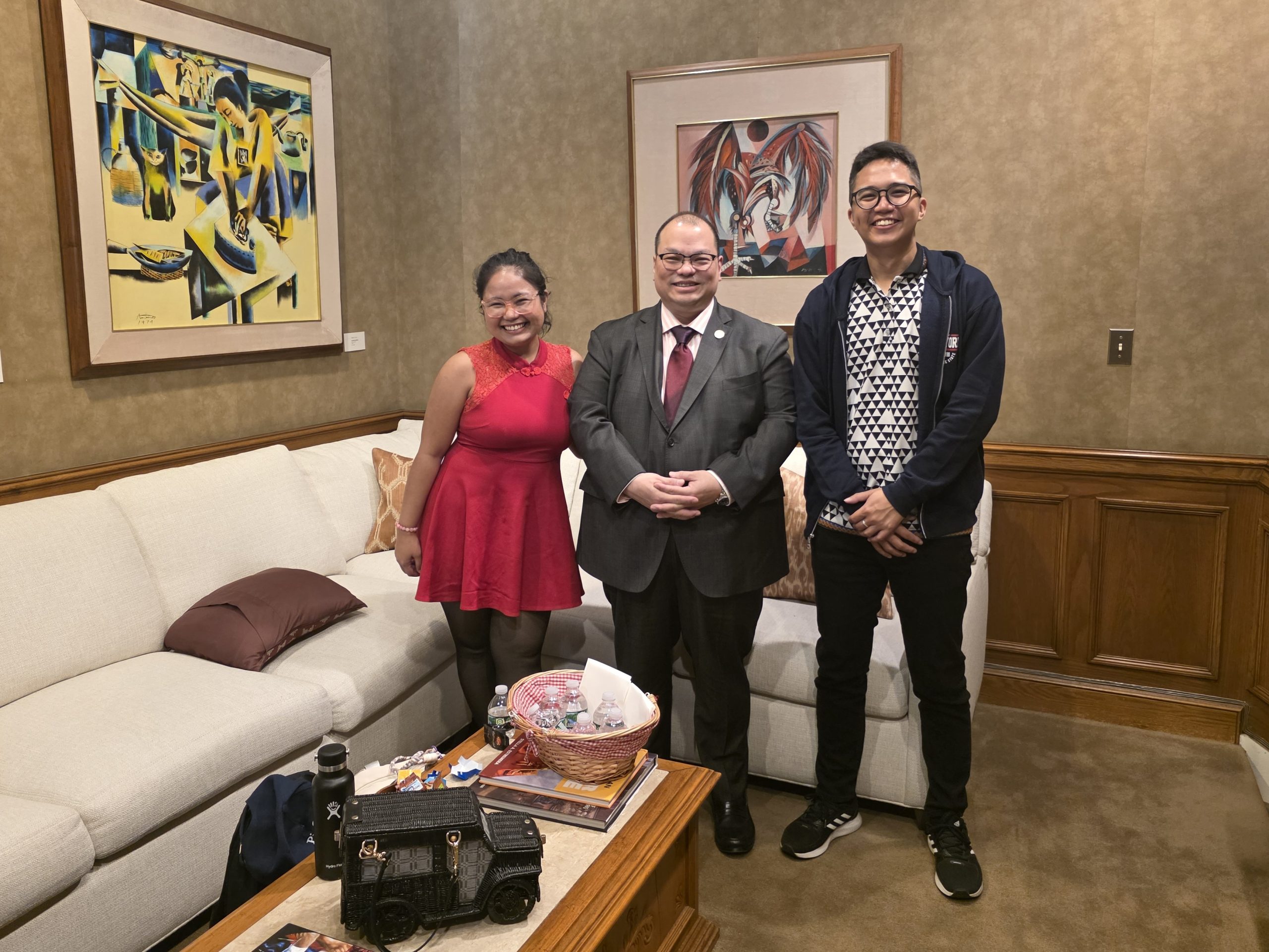 Consul General Senen T. Mangalile (center) with Mr. Abante and Ms. Bendaña following their courtesy visit at the Philippine Center in New York.