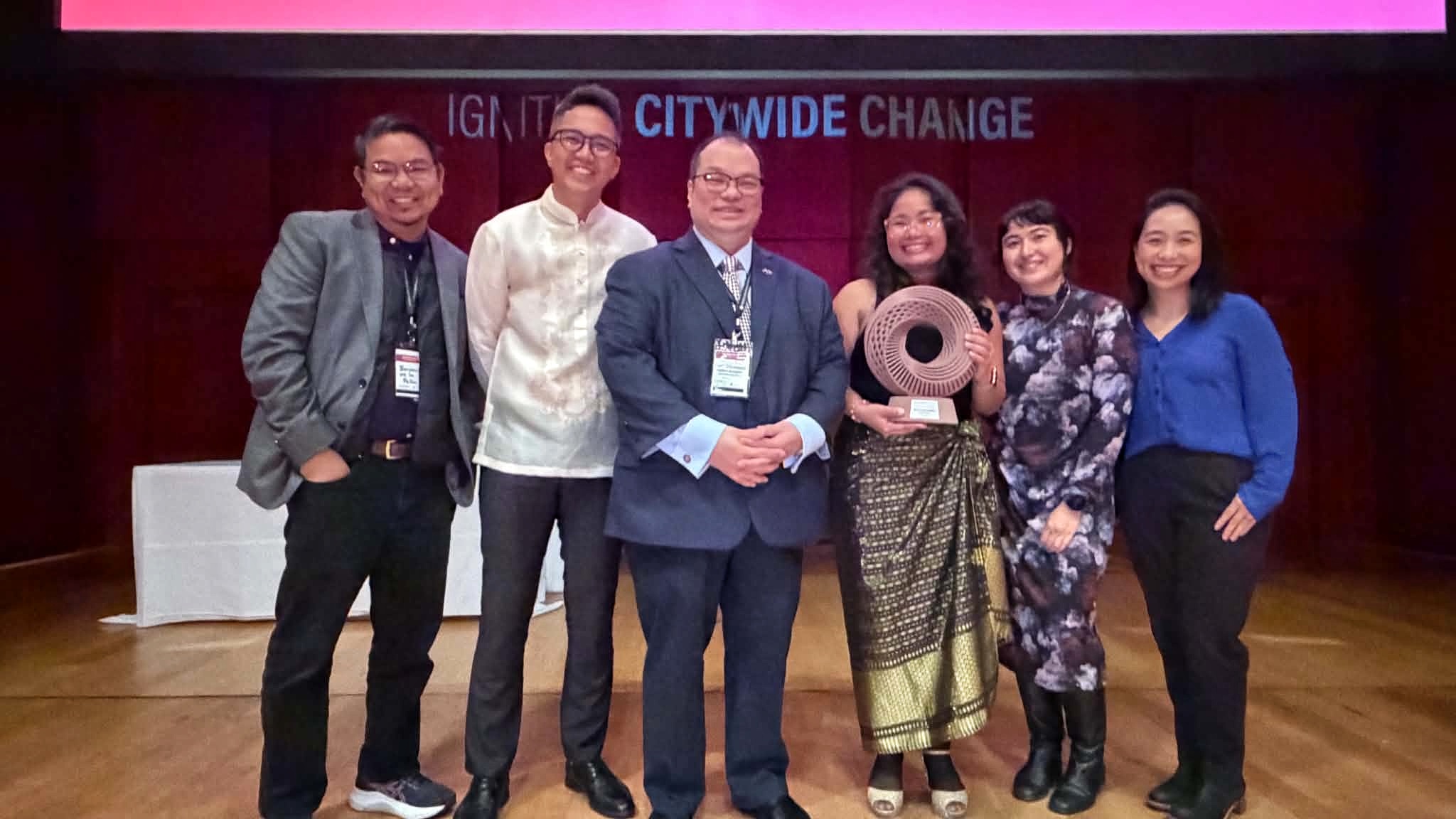 Consul General Senen T. Mangalile (third from left) with former Move As One National Coordinator Kenneth Isaiah Abante (second from left), National Coordinator Reycel Hyacenth Bendaña (third from right), following the 2025-2026 WRI Ross Center Prize for Cities ceremony in New York City.