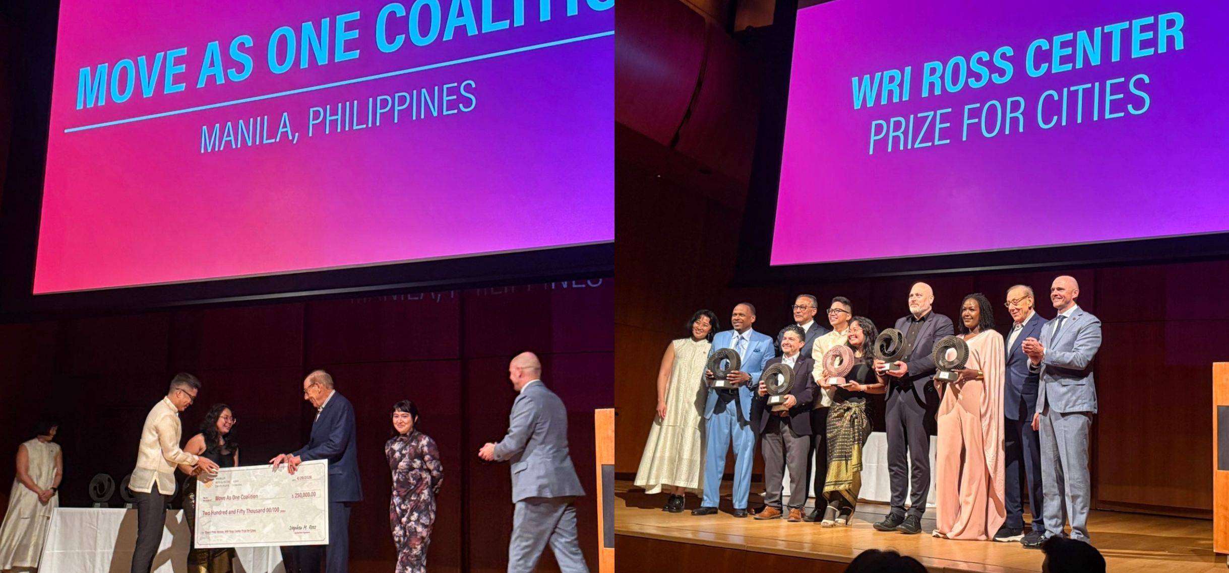 NEW YORK, 23 April 2026 – The Move As One Coalition, a Philippine-based grassroots and youth-led movement, won the grand prize in the 2025-2026 World Resources Institute (WRI) Ross Center Prize for Cities during awarding ceremonies held on 20 April 2026 at the Morgan Library & Museum in New York City.